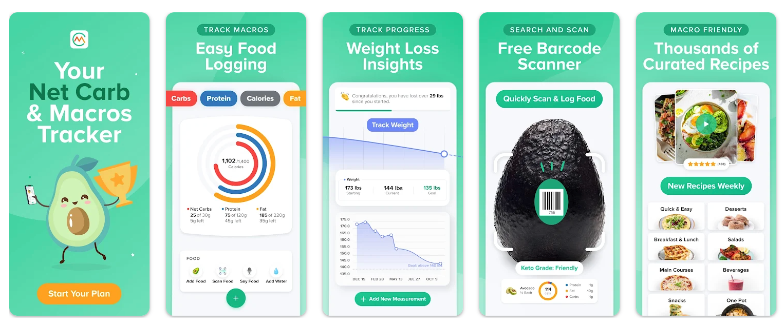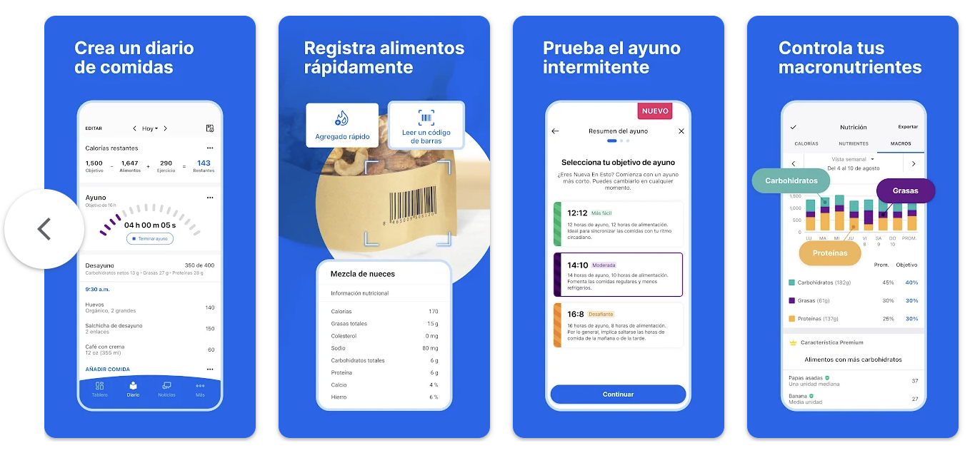 Su base de datos de alimentos permite registrar calorías y macronutrientes, incluyendo carbohidratos, lo que facilita el cálculo de insulina. Con un buen uso, permite tener mayor control sobre lo que se consume para lograr una alimentación equilibrada y balanceada. Además, se sincroniza con relojes inteligentes y otras apps de salud.